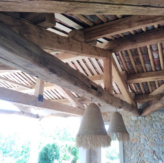 Intervention sur site, élimination du vernis et gros nettoyage par aérogommage pour cette magnifique et très ancienne charpente dans le haut var.