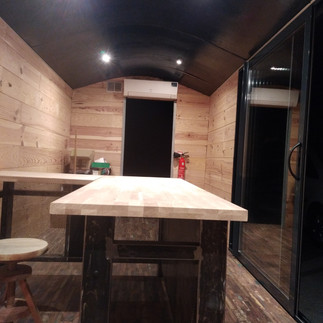 Pose du revêtement sur les murs, passage de l'électricité et pose du tableau électrique.